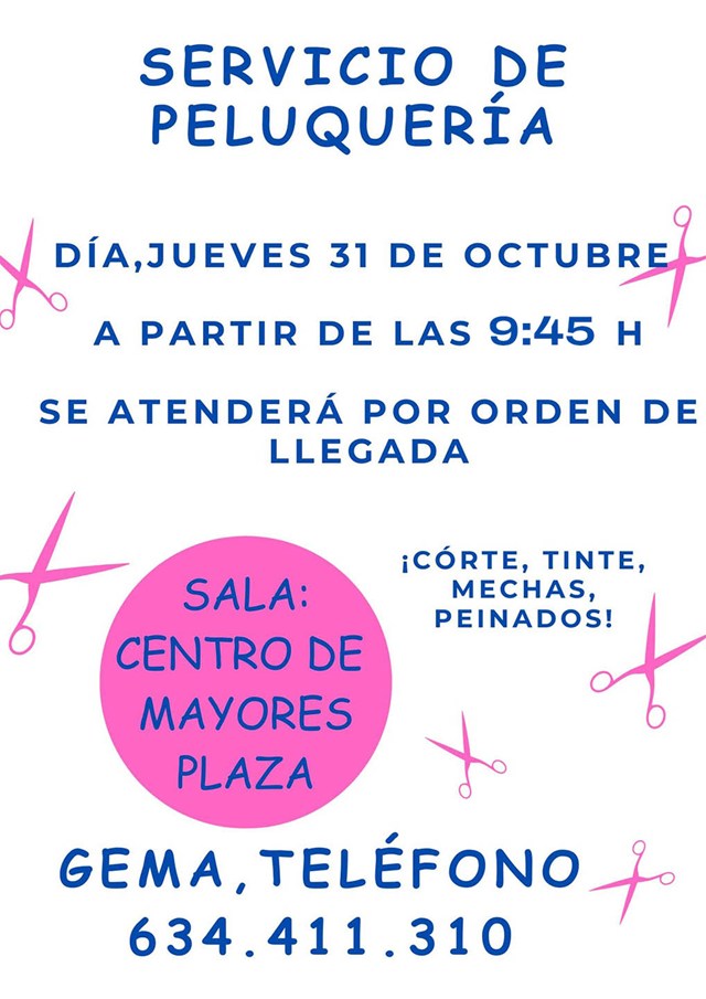 Cambio hora Servicio de peluquería: jueves 31 de octubre